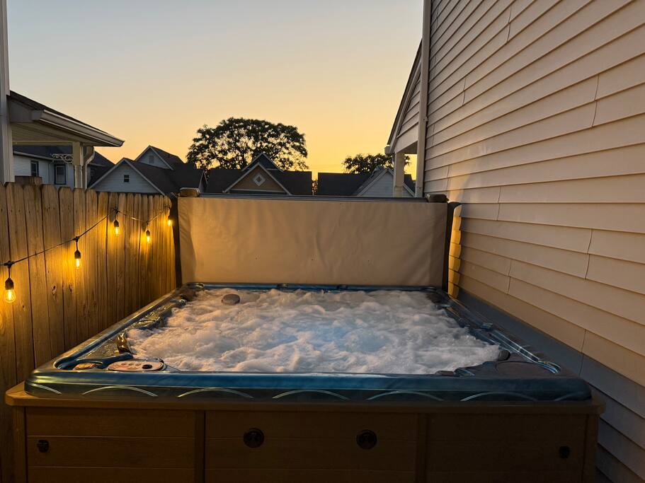 🚶♂️ Prime Downtown Location Walk to the Convention Center, Lucas Oil, Gainbridge Fieldhouse, and Indy’s best dining & nightlife. 🛀 Hot Tub Retreat - Private hot tub in fully fenced in space - Plush robes - Beach towels 🐾 Pup-Friendly Perks - Fully fenced side yard for safe play - Walkable neighborhood for easy strolls - Dog bowls & waste bags provided 🛏️ Sleep Soundly - 3 cozy queen bedrooms (sleeps 6 comfortably) - Bonus twin mattress + bedding - Comfy couch w/ bedding for extra guests - Sound machines, fans & earplugs for restful nights - Charging stations ☕ Fully Stocked Kitchen + Coffee Bar - All essentials to cook & dine in - Coffee bar with local beans, grinder, French press, drip & Keurig - Tea, sweeteners, creamer & more 💻 Work-Ready Features - Ergonomic standing desk - High-speed Wi-Fi for Zoom & streaming - Quiet, focused environment 🛁 Hotel-Style Bathrooms - Shampoo, conditioner, body wash & lotion - Plush towels + blow dryer provided 🎉 Designed for Downtime - 2 smart TVs with streaming apps - Books, board games & puzzles for cozy nights in